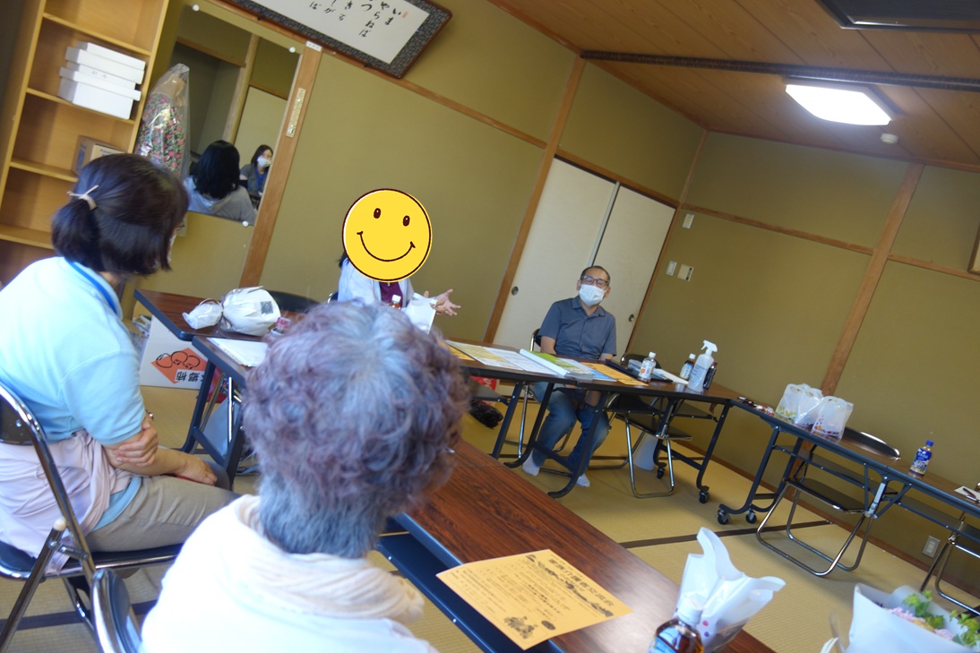 | 地域の方12名、専門職10名、ボランティア1名、計23名が集いました。 はじめに、『脱水予防』と『夏にちなんだ脳トレクイズ』について、みんなで意見を出し合い、 この夏を元気に乗り切る対策と豆知識について学びを深めました。 また、専門職から椅子に座ってできる体操の紹介があり、身体の部分ごとの筋肉に働きかける、 より効果的な体操を、笑いとユーモアを交えながら行い、たくさんの笑顔と温かな交流に包まれた時間となりました。 |