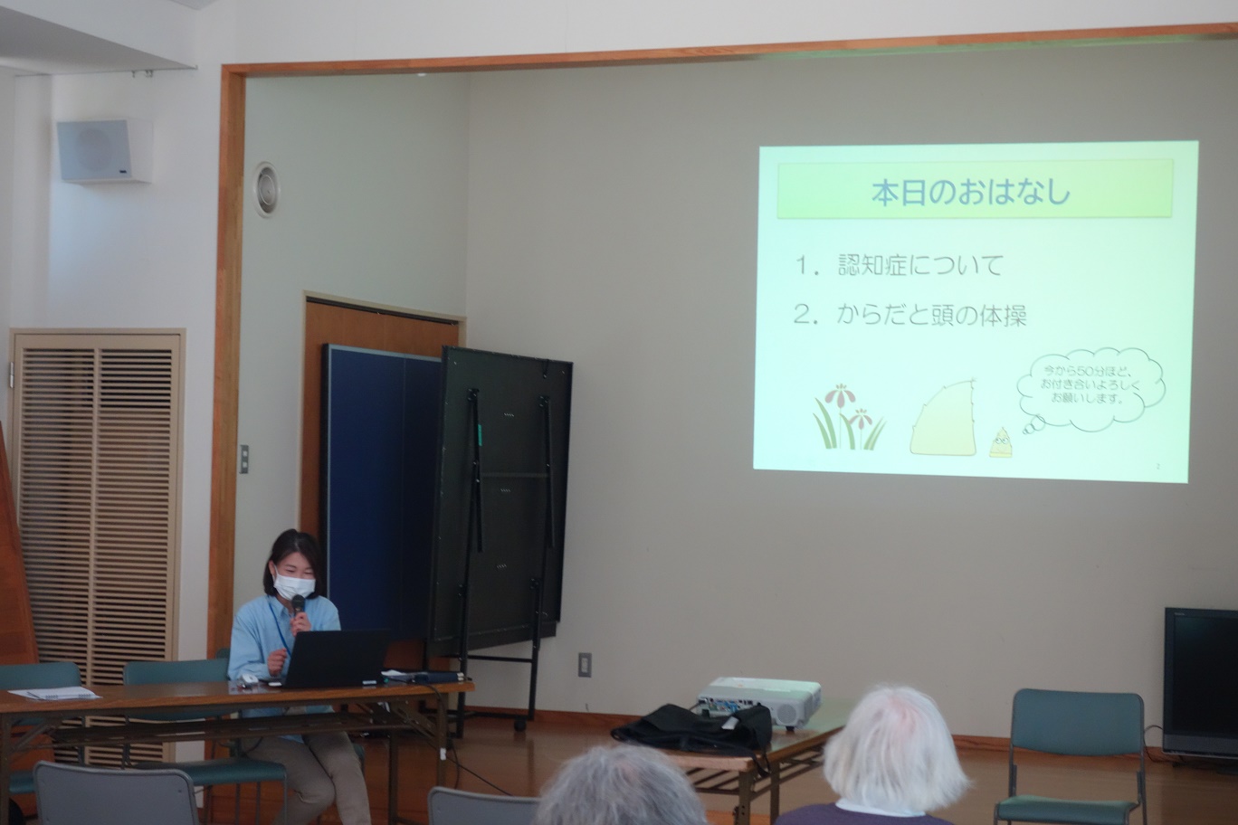 内海町田島西部地区の福祉を高める会・ボランティアの会で開催されているいきいき・サロンで、 『からだと頭のいきいき講座』と題し、認知症についての講座を行いました。 前半は、認知症についての動向や福山市での取り組み、認知症カフェ等についての情報提供や、 認知症の本人さんの想いや不安に寄り添い、周りの人ができる心掛けについてともに考える 時間を持ちました。 後半は、昭和にまつわるクイズや、からだと頭を同時に使って行う体操を行い、思わず 「くすっ」と笑みがこぼれる楽しい時間となりました。 |