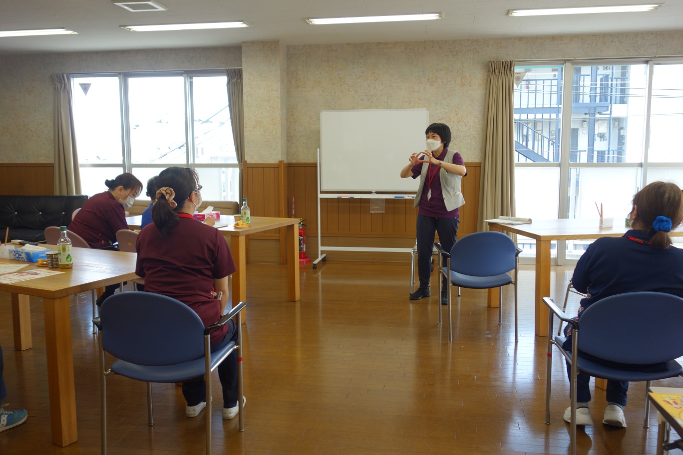 6月の会のテーマは『フレイル予防について』。 松永保健福祉課の保健師さんからフレイルの要因などのお話や、実際にフレイルチェックを行うことで、 自分自身のからだや生活習慣について振り返る時間となりました。 また、松永健康スポーツセンター職員さんによる指の体操などの脳トレでは、参加者とスタッフが 一緒に楽しく交流を行いました。今月も、ピアノの伴奏に合わせて“雨ふり”や“瀬戸の花嫁” などを合唱し、梅雨の晴れ間のようなすがすがしい気持ちになりました。 |
