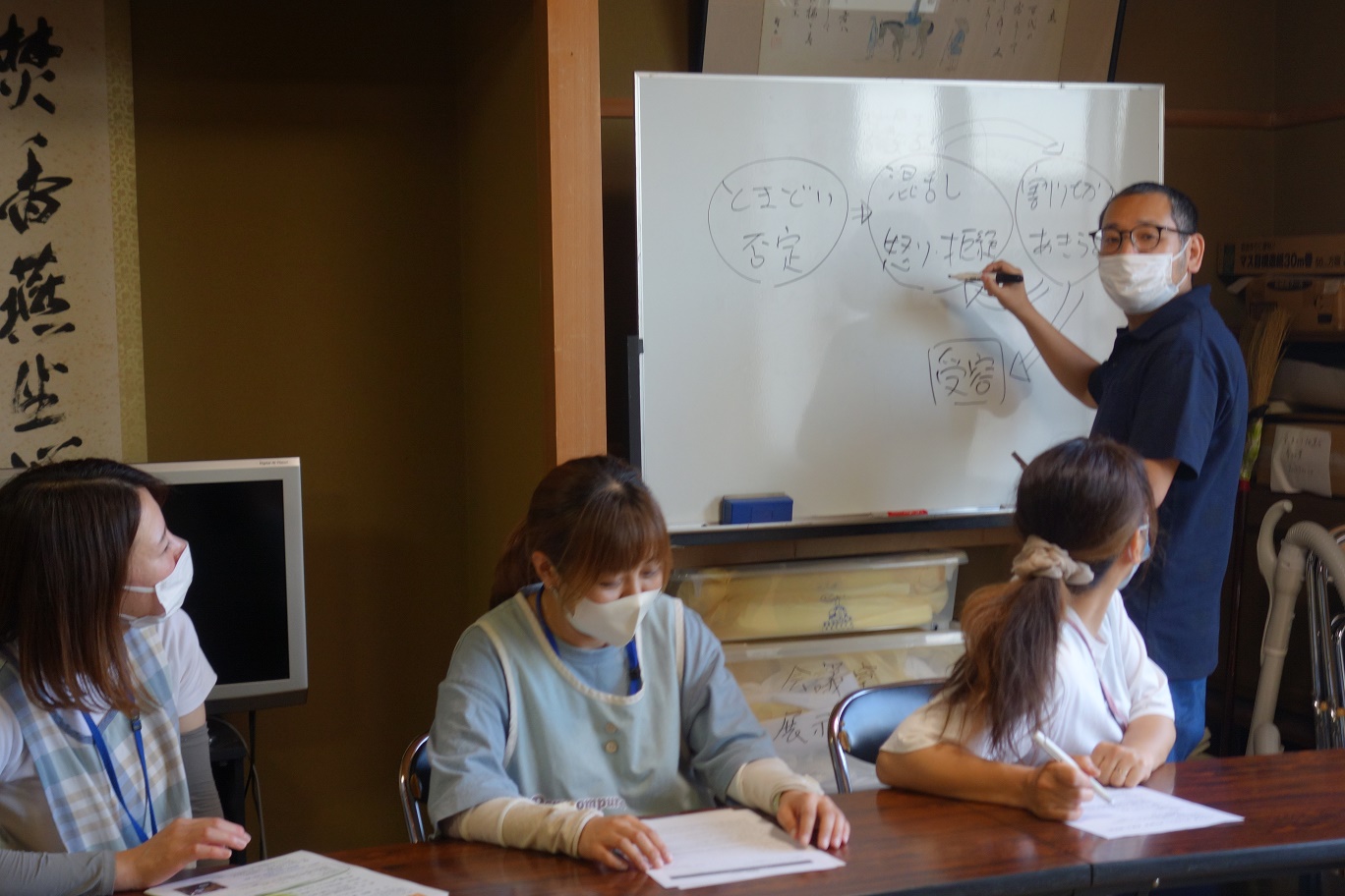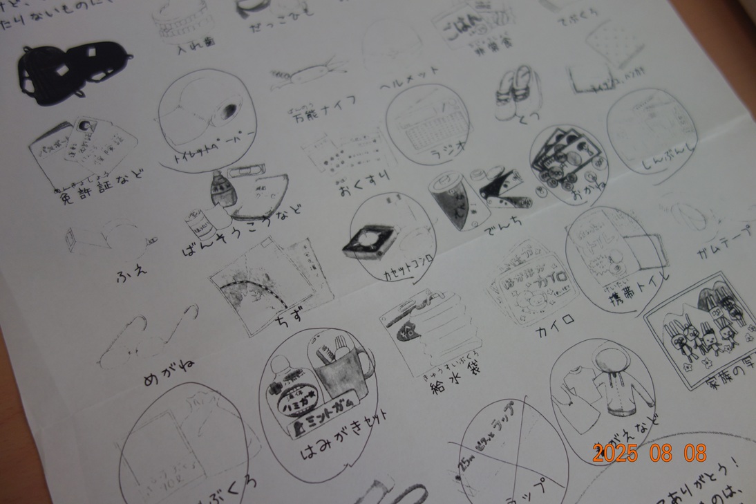 今回は、福祉防災サポートつむぎ代表の出原さんを講師にお招きし、『防災について』みんなで考える時間をもちました。 「非日常な日常」と題し、非常用袋の中身について意見を出し合ったり、避難の方法について等たくさんの質問が挙がりました。 「普段から防災を意識しながら生活に取り入れることで、いざという時に役立つ」「普段から使い慣れているものや、 食べ慣れているものを準備しておくことが大切」などのアドバイスから、“もしも”のために、今からできそうな事を日常に取り入れ 災害への備えについて今一度、考え直していきたいと感じました。 |